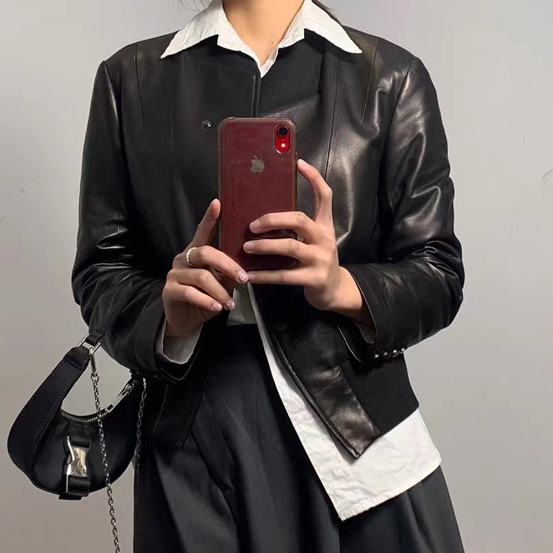 new style of real sheepskin leather jacket for lady